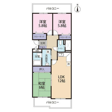 | 間取り | 3LDK(LDK12 洋5.8 洋5.8 和6) | 主要採光面 | 南 |